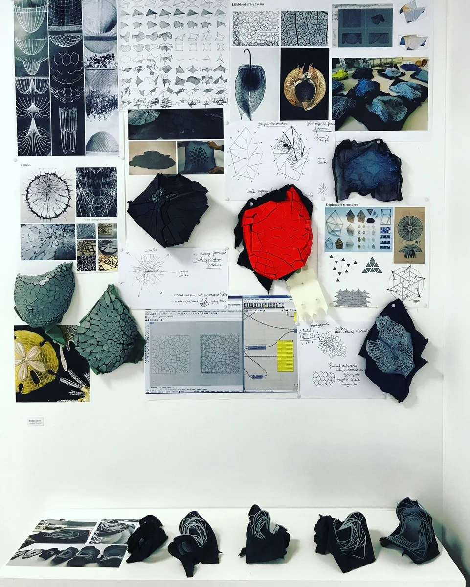 On Sept. 13st 2017, Textile Design Research Group at Loughborough University organised INTERSECTIONS, a one-day-conference with exhibition. Verena Ziegler presented her collaborative interdisciplinary PhD research project «InBetween: material encounters in human/non-human interactions» which is situated at the intersection of architecture, textile design, and interaction design and speculates on sustainable forms of future life in critical future scenarios and experimental prototypes.